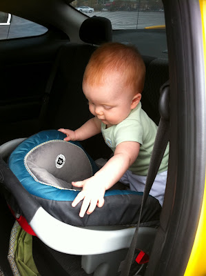 Epic Fail #2- Not buckling him in for a 30 second drive. Ok, so this a two-for-one deal. We were in St Louis visiting family and I was shopping in this little shopping mall. I didn’t want to carry 9 month old E to the next shop (I didn’t have the stroller with me- oh, that’s another fail!) so I thought I would just drive the 30 seconds down the parking lot to the next store. I placed E in his carseat and thought he would be fine for those 30 seconds without being fully strapped in the seat. When I parked, and went to get him out of his seat, this is what I saw. Oops.
