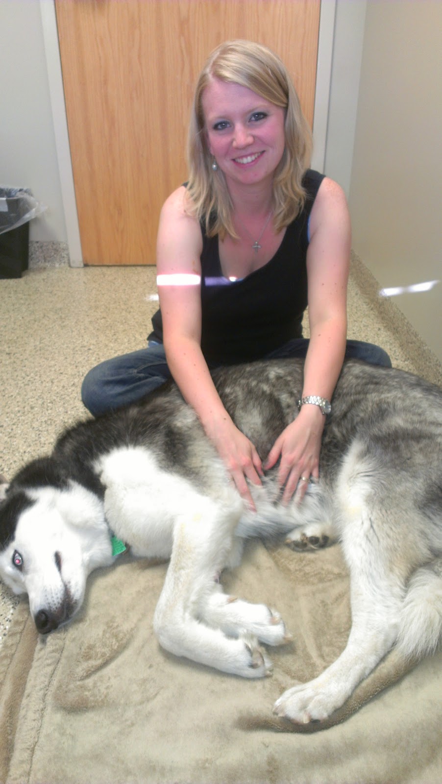 After 10 minutes, I decided it was time to go and Cali would not budge from the river. Even with her love of water, I began to get concerned. Cali is a very obedient, sweet dog. The fact that she would NOT get up, even with a tug of the leash, started to worry me. I started to panic on the inside. I knew something was not right. A gentleman that was fishing down the river came over to help me and eventually we got her to get up and she wobbled to the car. Luckily, we were very close to where I had parked.