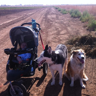 Check out my walking buddies and the pretty (pretty dry!) landscape!