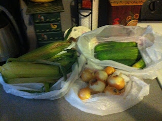 - I went to the Farmers Market (for the first time!) and came back with about 6 cucumbers, 6 ears of corn and a bag of onions for $6 bucks total. I am so going to go to the farmers market on a weekly basis!